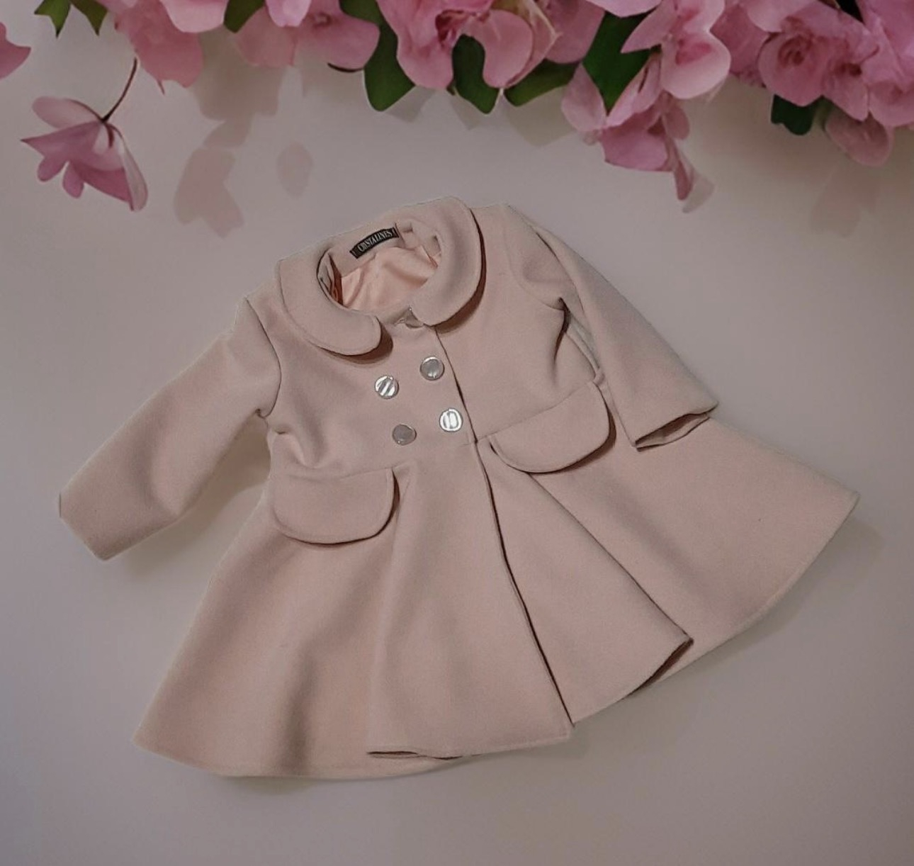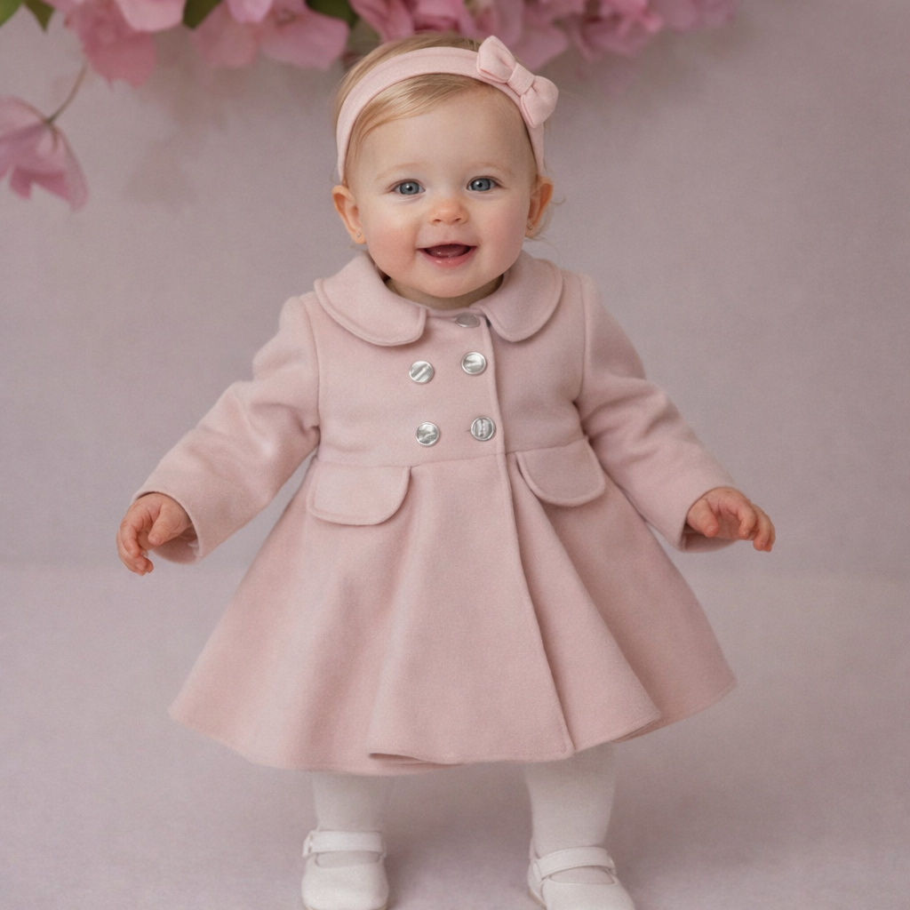Realizat din stofa si captusit cu bumbac, paltonasul asigura cu eleganta confortul termic al micutei. Croiala si atentia la detalii asigura eleganta si confort. Este o alegere deosebita pentru orice ocazie si este foarte potrivita pentru evenimente (botez, aniversari) sau sedinte foto, putand fi, deasemeni, un cadou minunat.