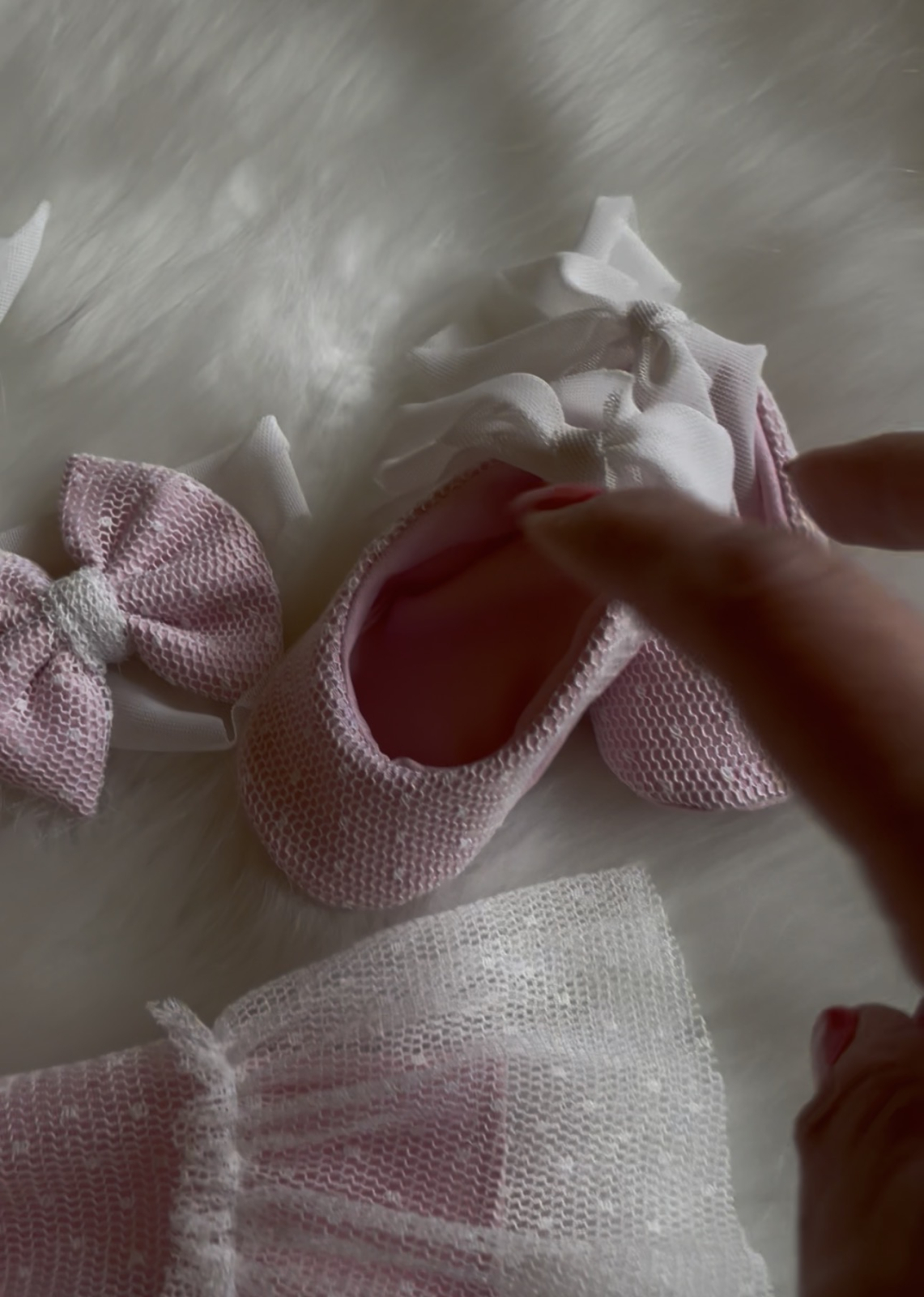 Rochița Arya este o rochiță delicată, în nuanță de roz pudrat, cu fundă decorativă amplă și fustă din tul fin cu buline. Elegantă și confortabilă, este ideală pentru botez, aniversări și momente speciale.